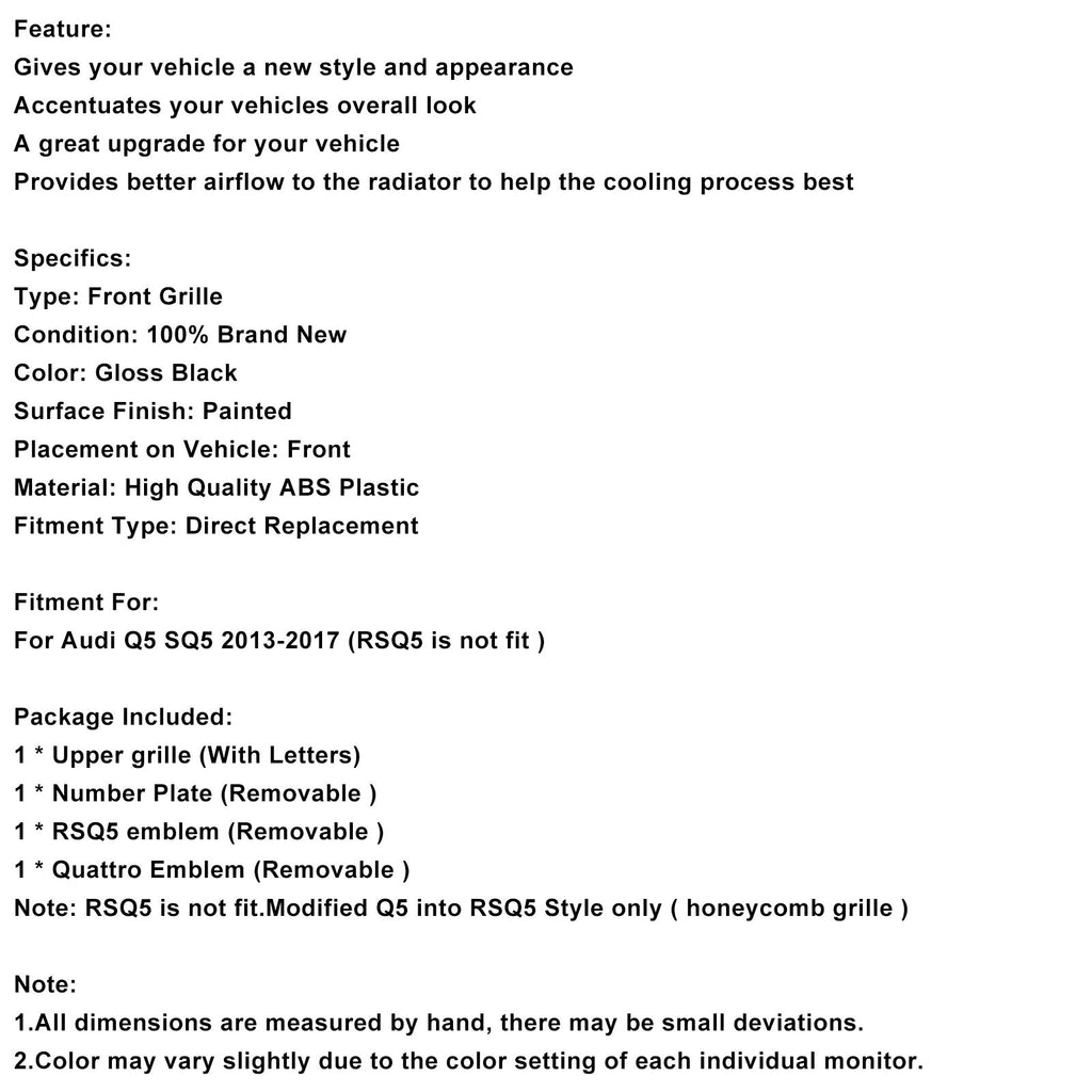 Hinweis: RSQ5 ist nicht passend. Nur modifizierter Q5 in RSQ5-Stil (Wabengrill).