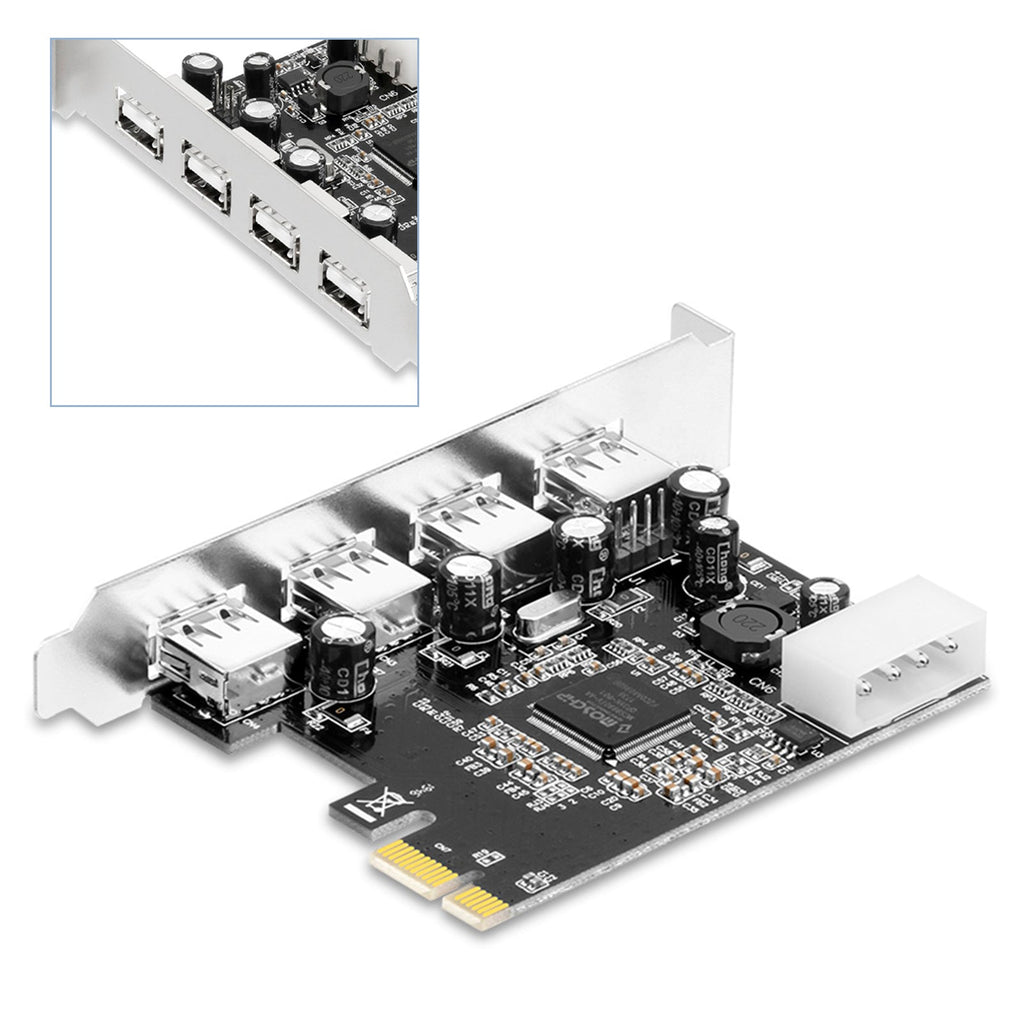 HUB 2.0 PCIE auf USB 2.0 Erweiterungskarte Moschip Desktop-Adapterkarte Großes 4PIN-Netzteil