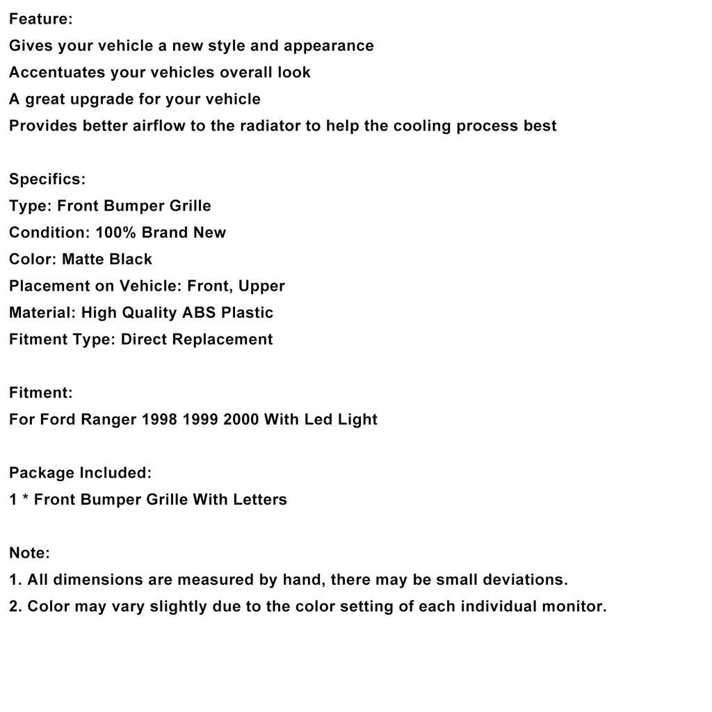 Frontstoßstangengrill in Mattschwarz, passend für Ford Ranger 1998-2000, mit LED-Beleuchtung