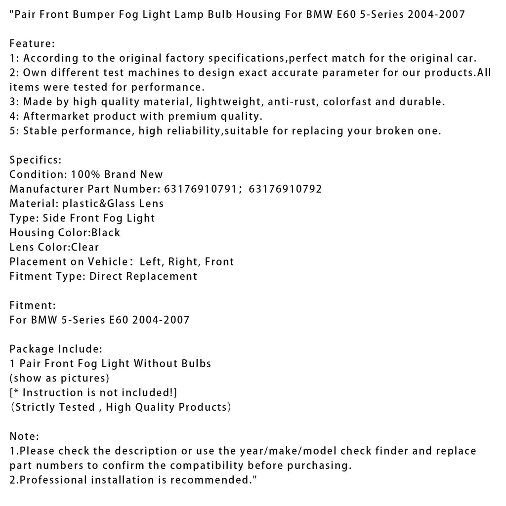 Paar Front Stoßstange Nebel Licht Lampe Birne Gehäuse Für BMW E60 5-Serie 2004-2007