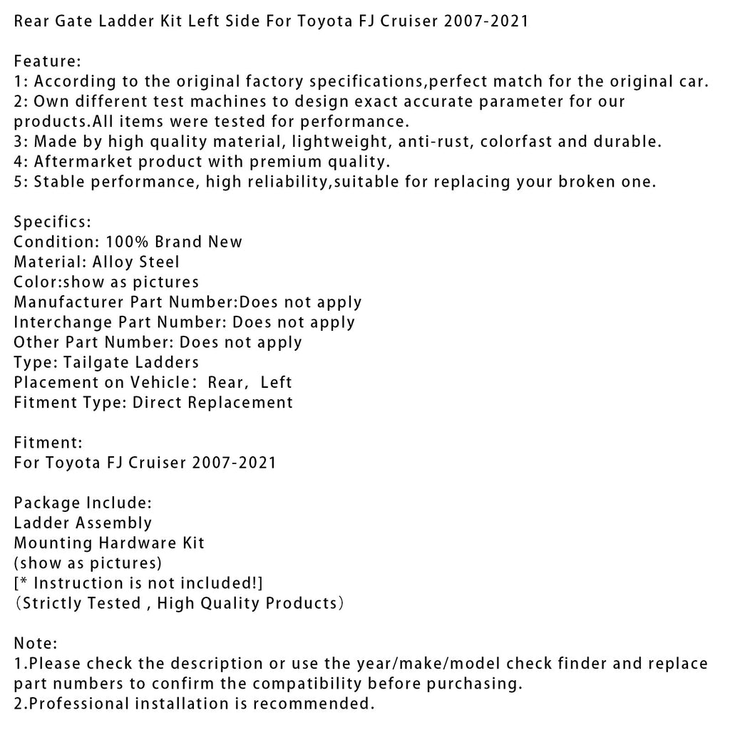 Leitersatz für die hintere Tür, linke Seite, für Toyota FJ Cruiser 2007–2021