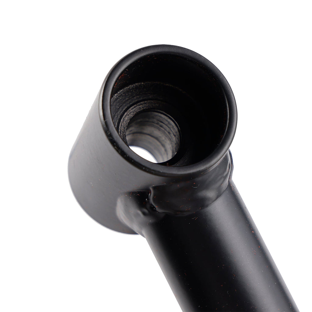 Ein hochwertig gefertigter schwarzer Gepäckträger aus Rohren.