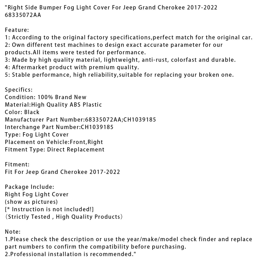 Nebelscheinwerferabdeckung rechts für Jeep Grand Cherokee 2017-2022, Teilenummer 68335072AA