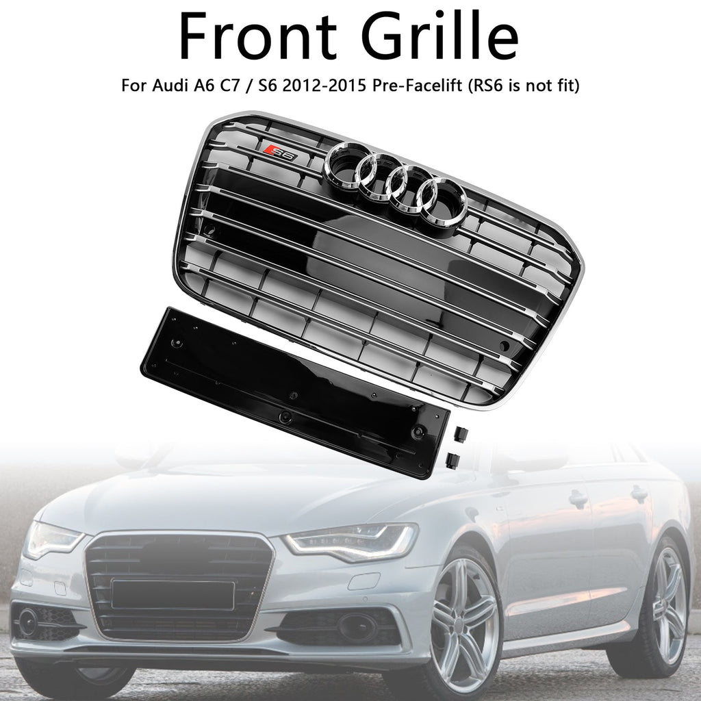 S6 Stil Front Stoßstange Grill Grille Fit Audi A6 C7 2012-2015 Chrom
