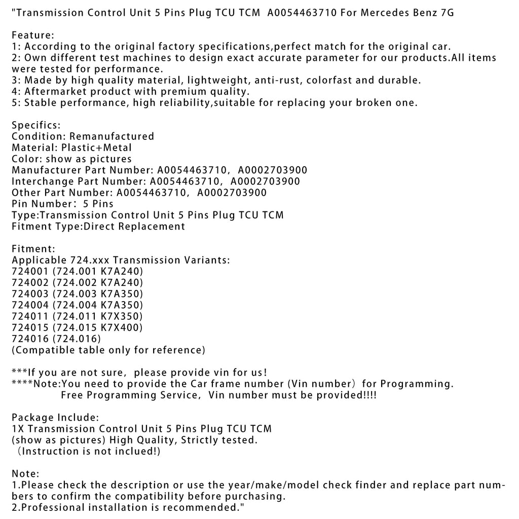 Übertragung Control Unit 5 Pins Stecker TCU TCM A0054463710 Für Mercedes Benz 7G
