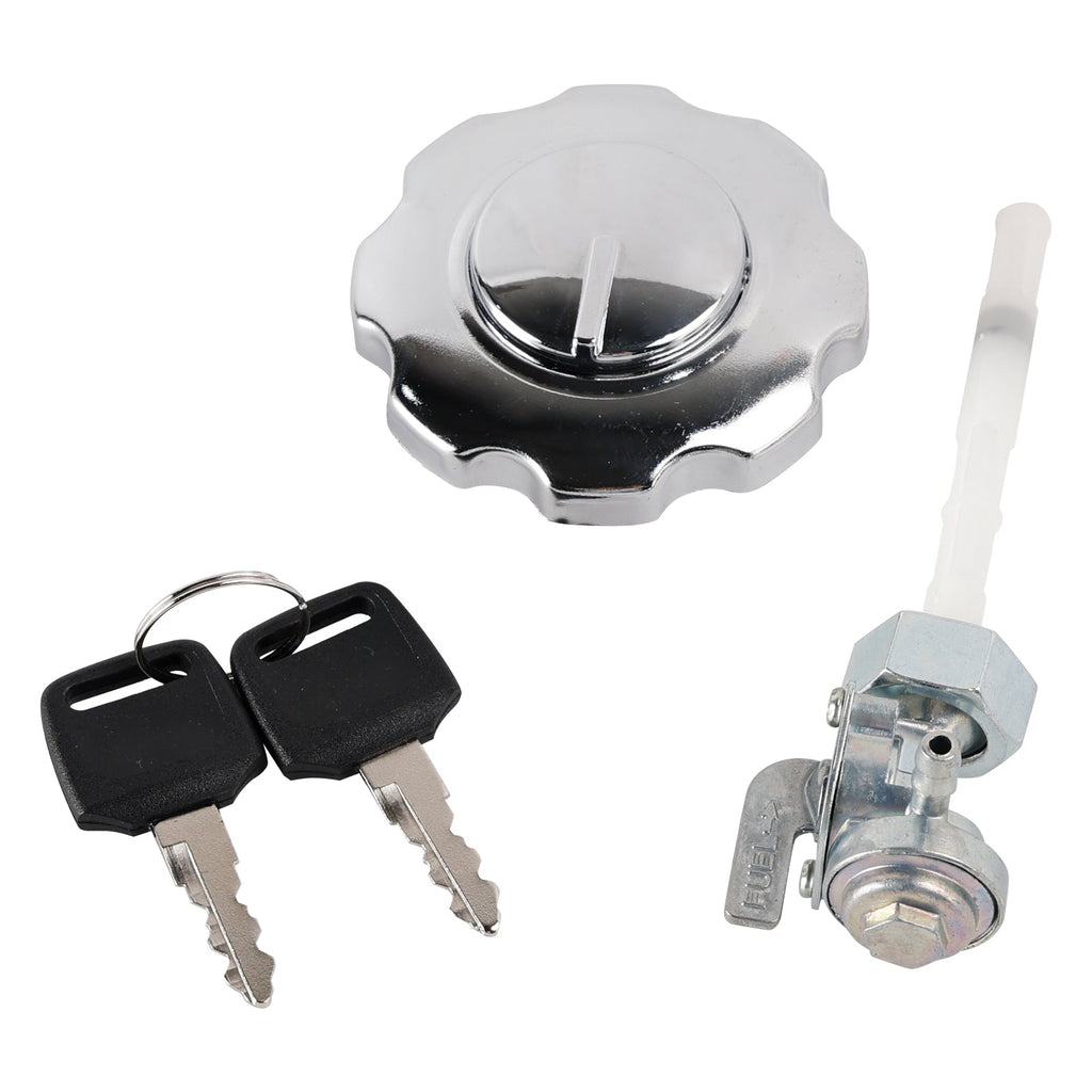 Enthält einen verchromten Tankdeckel mit Schlüsseln und einen Benzinhahn zur Verwendung mit einer 3/16-Zoll-Kraftstoffleitung.