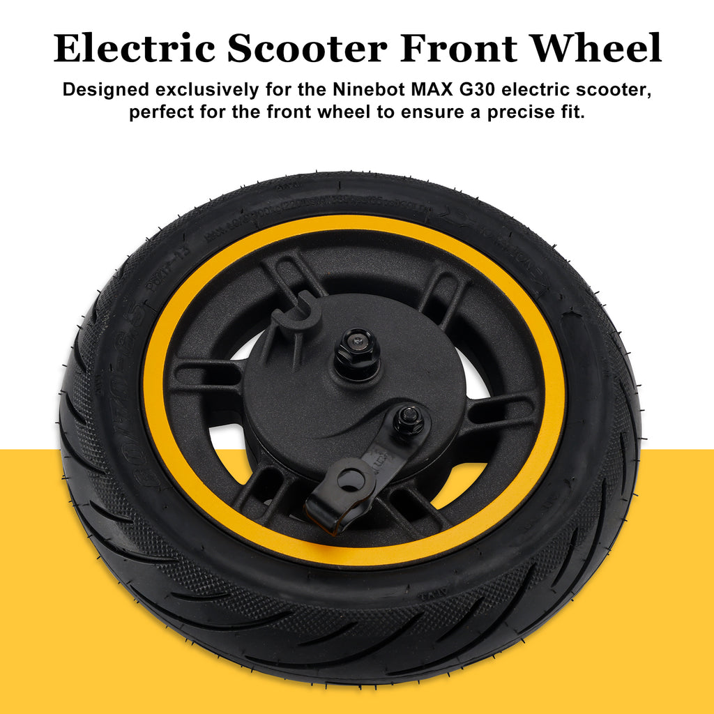 Dieses Vorderrad für Elektroroller wurde speziell für den Elektroroller Ninebot MAX G30 entwickelt und ist mit 10-Zoll-Vorderrädern der Größe 60/70-6,5 kompatibel. Es ist nicht für Hinterräder oder andere Rollermodelle geeignet.