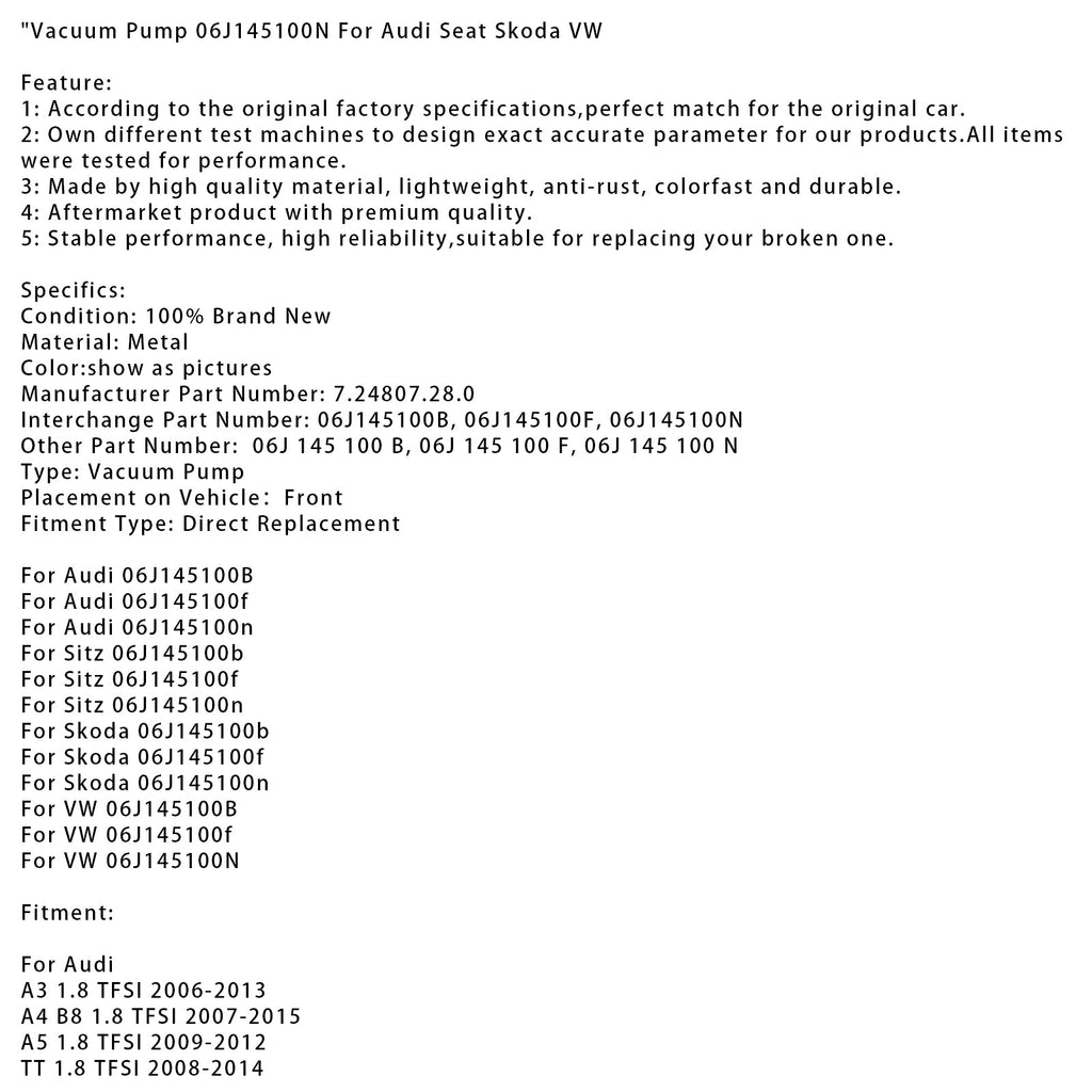 Vacuum Pump 06J145100N Fit For Audi Seat Skoda VW