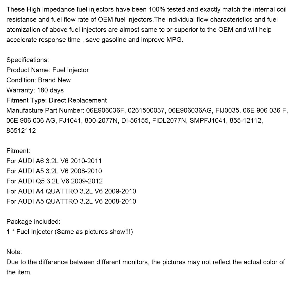 1 STÜCKE Kraftstoffinjektor 06E906036F Passend Für Audi Q5 A4 A5 A6 3.2L V6 2008-2011 0261500037