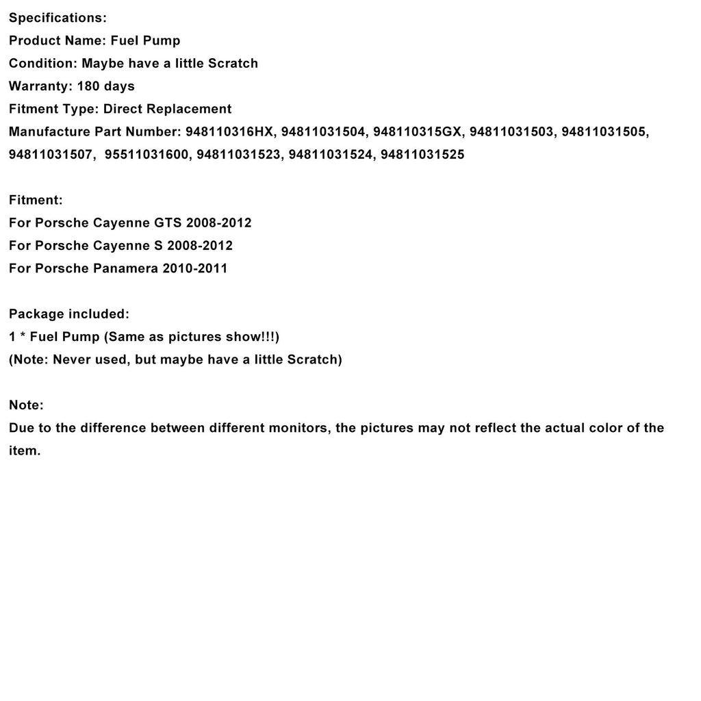Hochdruck-Kraftstoffpumpe 948110316HX passend für Porsche Cayenne Panamera 2008-2012 4,8L