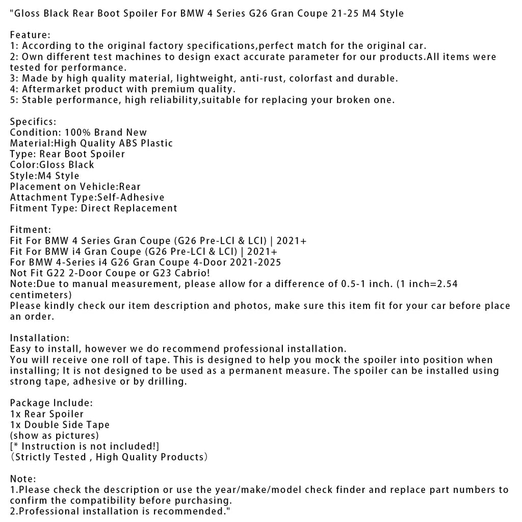 Heckspoiler in Hochglanzschwarz, passend für BMW 4er G26 Gran Coupé (2021–2025), M4-Stil