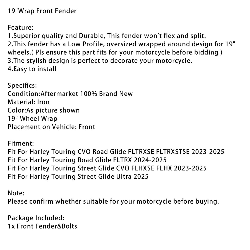 19 ""Wrap Kotflügel Vorne Fit Für Touring Road Glide Street Glide CVO 2023-2025