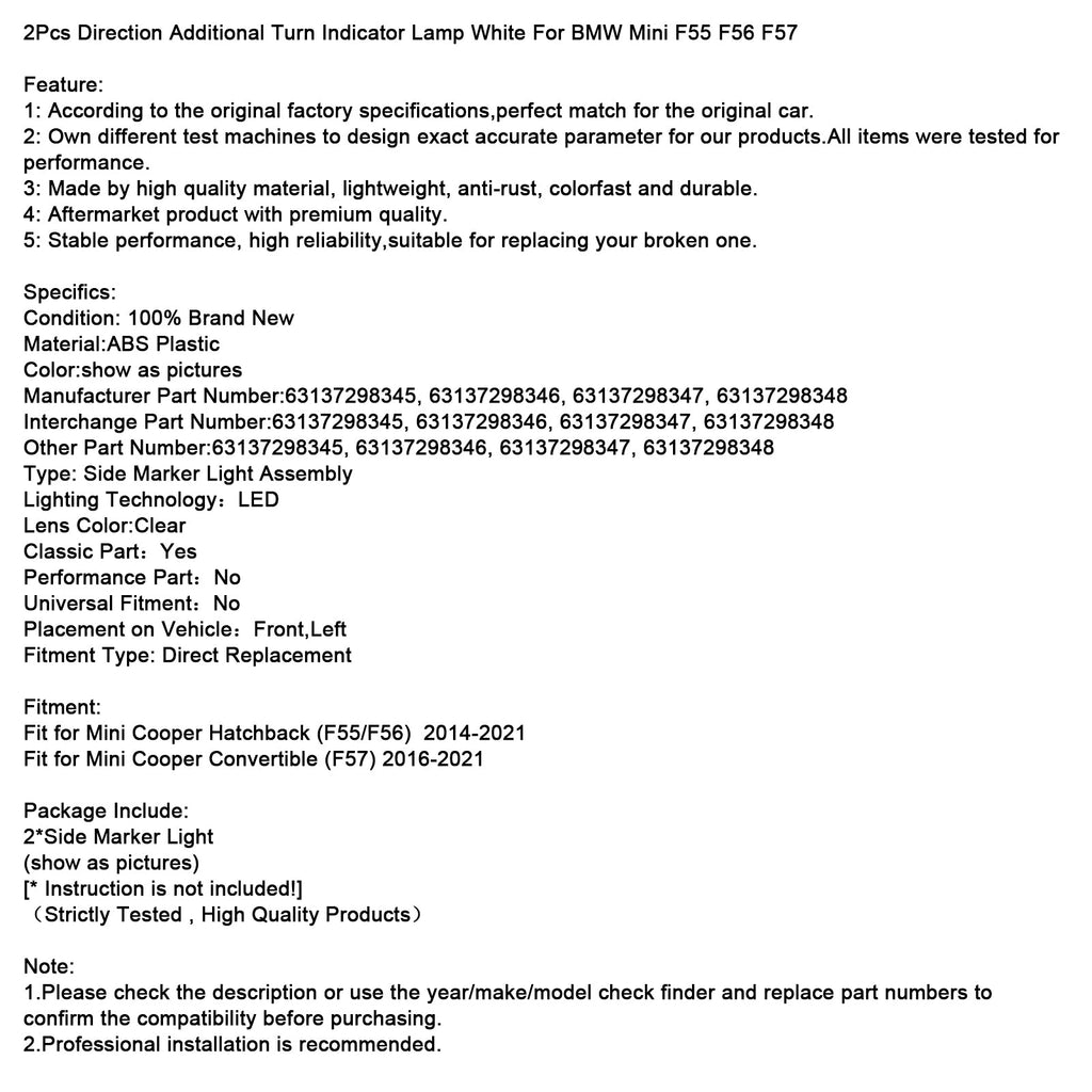 2Pcs Richtung Zusätzliche Blinker Lampe Weiß Für BMW Mini F55 F56 F57