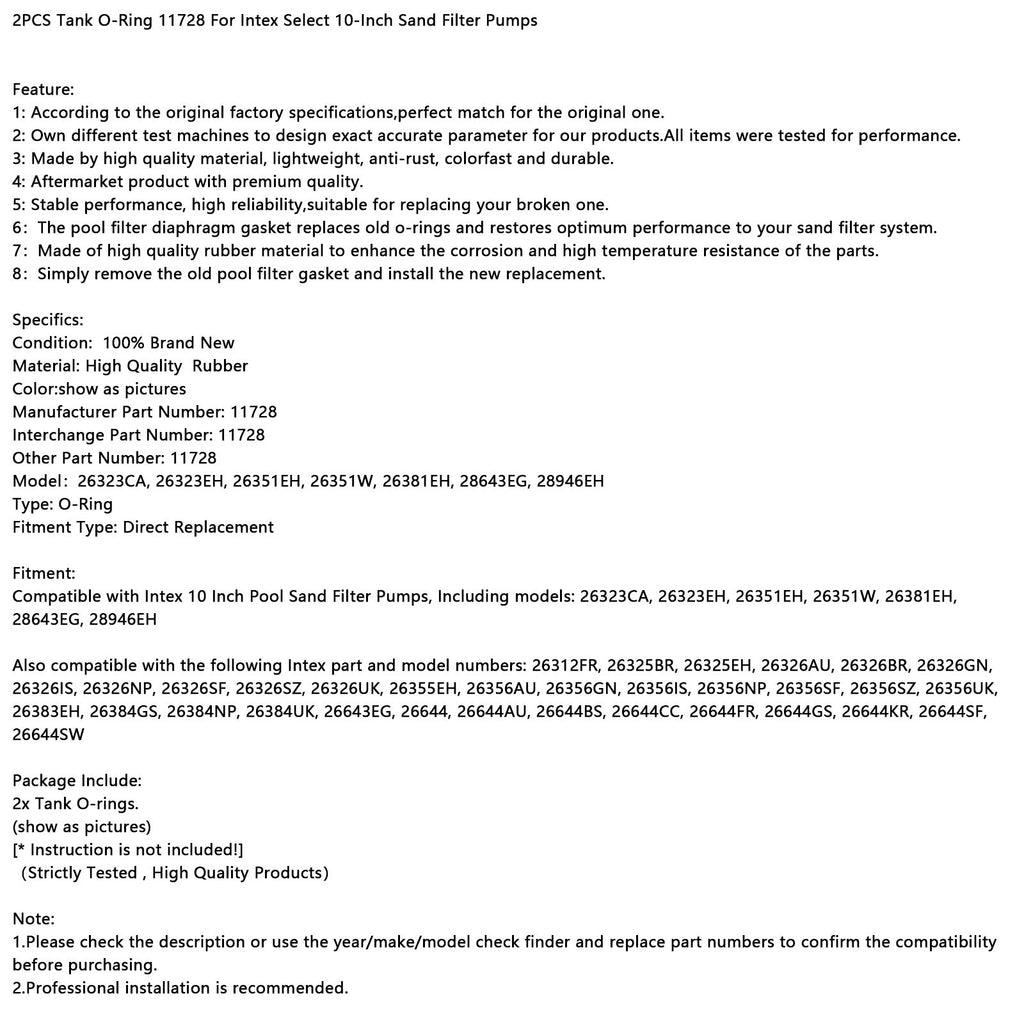 2PCS Tank O-Ring 11728 For Intex Select 10-Inch Sand Filter Pumps