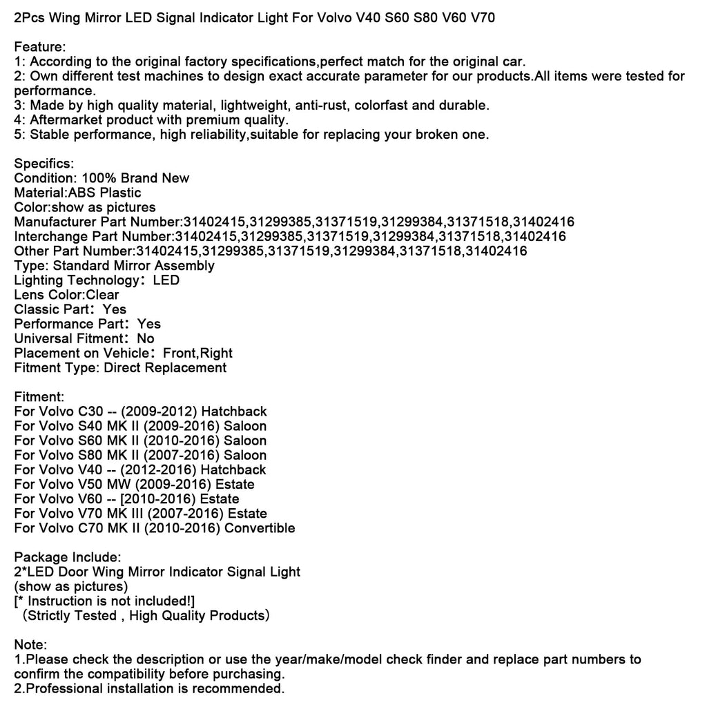 2Pcs Flügel Spiegel LED Signal Anzeige Licht Für Volvo V40 S60 S80 V60 V70