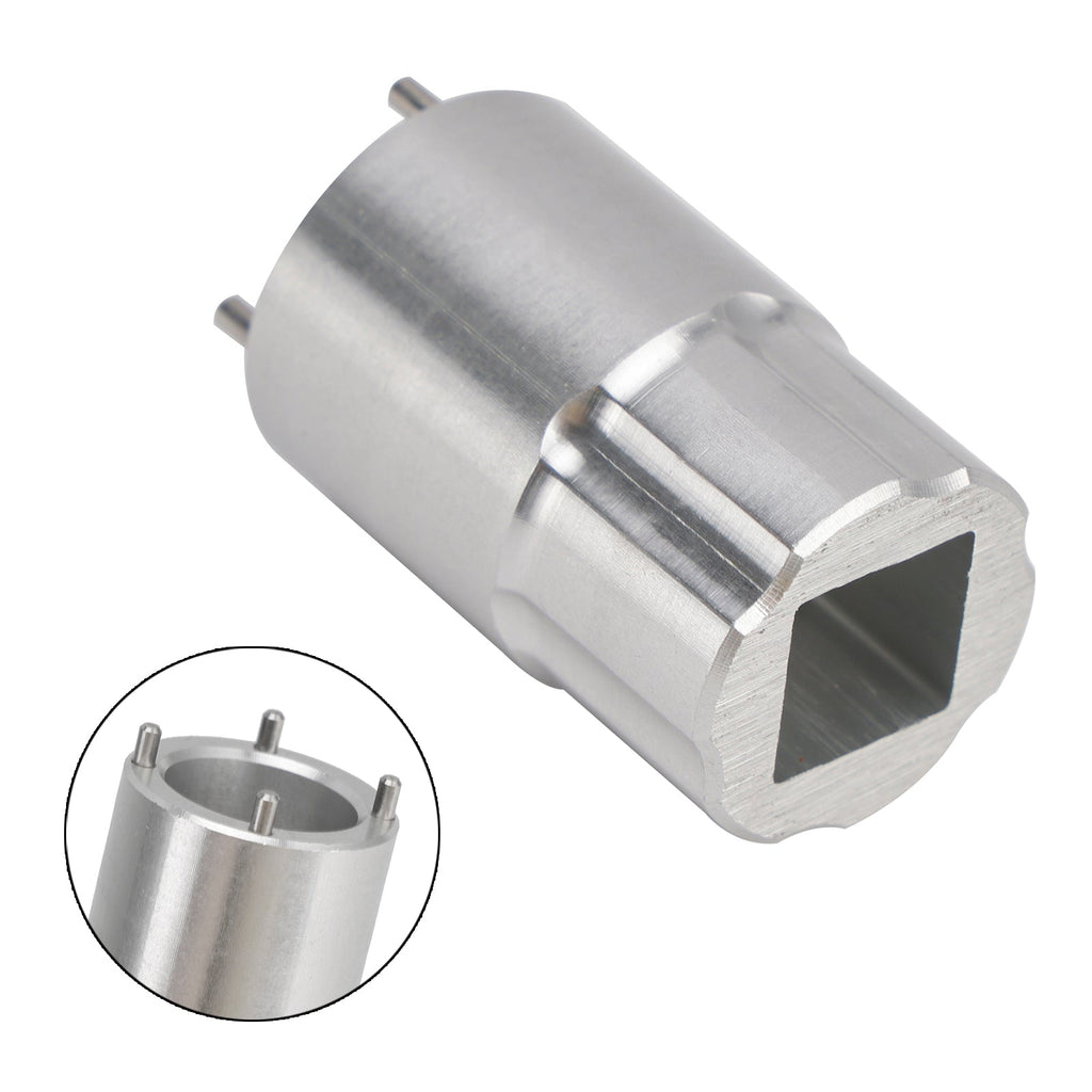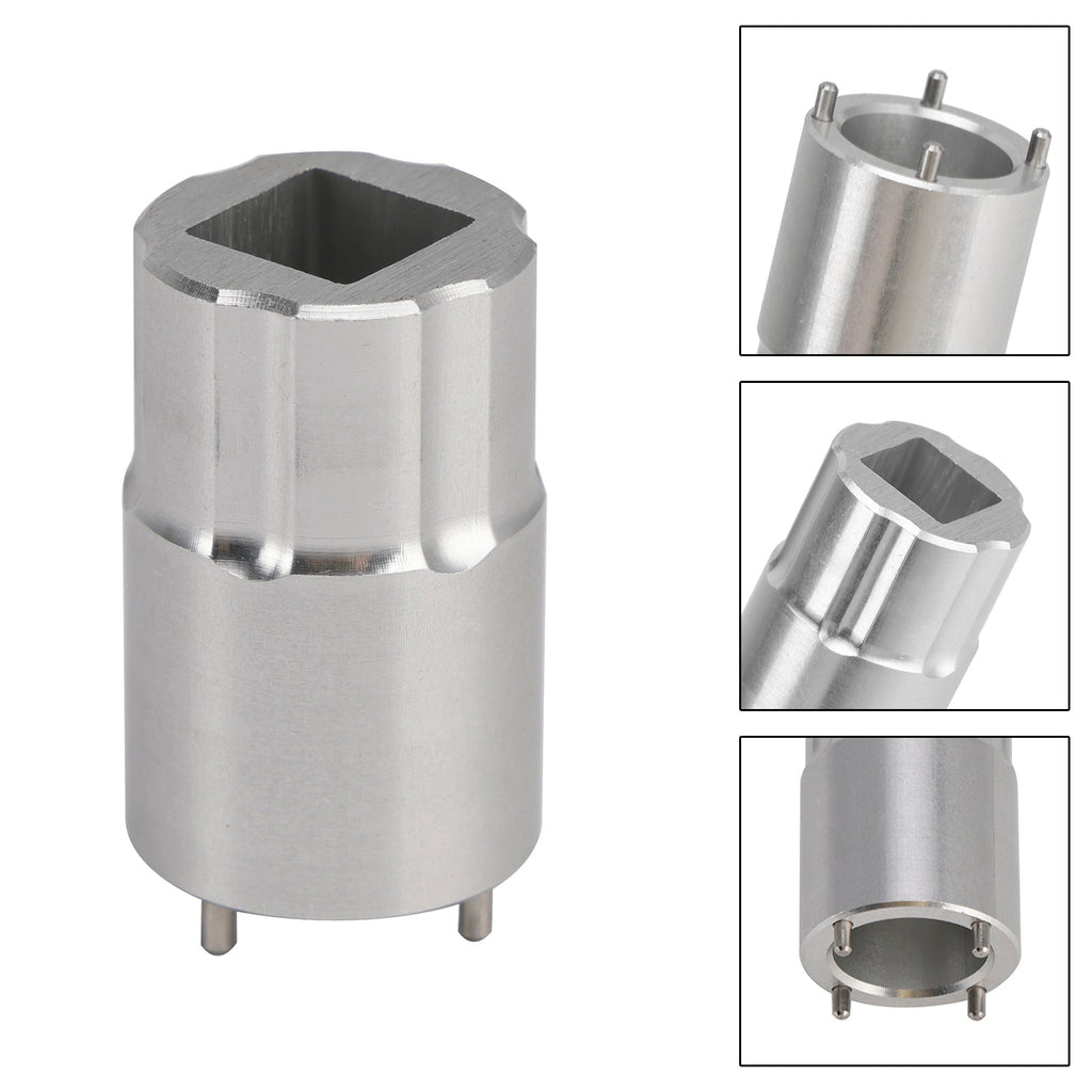 Damit lässt sich die Ventilkappe am DPX2 entfernen. Es ist passend für Fox-Teilenummer 398-00-763. Es verfügt über gehärtete Stahlstifte und einen 3/8-Zoll-Vierkantantrieb. Wir haben seitliche Kerben angebracht, um bei Ölflecken für mehr Halt zu sorgen.