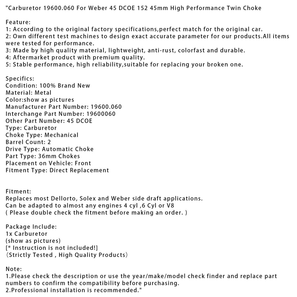 Vergaser 19600.060 Passend für Weber 45 DCOE 152 45 mm Hochleistungs-Doppeldrossel