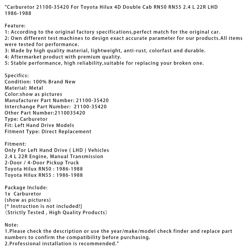 Vergaser 21100-35420 Passend für Toyota Hilux 4D Doppelkabine RN50 RN55 2,4 L 22R LHD 1986-1988