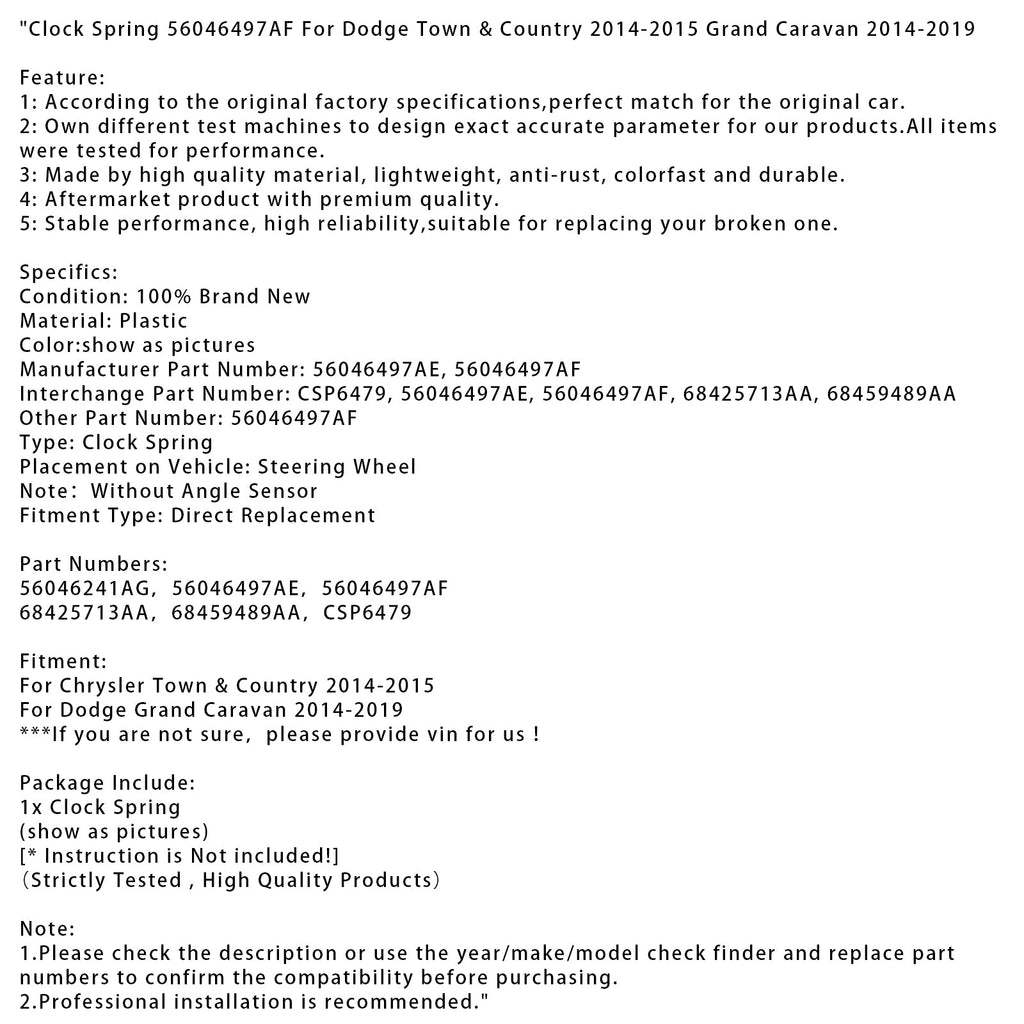 Uhr Frühling 56046497AF Für Dodge Town & Country 2014-2015 Grand Caravan 14-2019