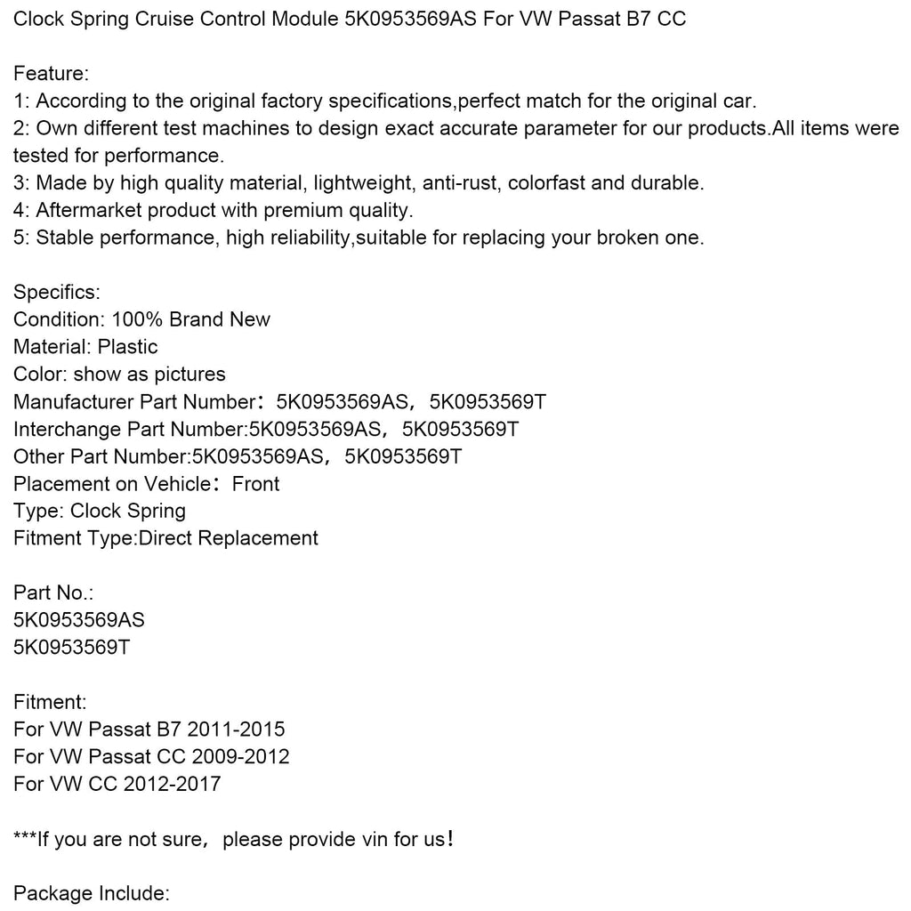 Uhrfeder-Tempomatmodul 5K0953569AS Passend für VW Passat B7 CC
