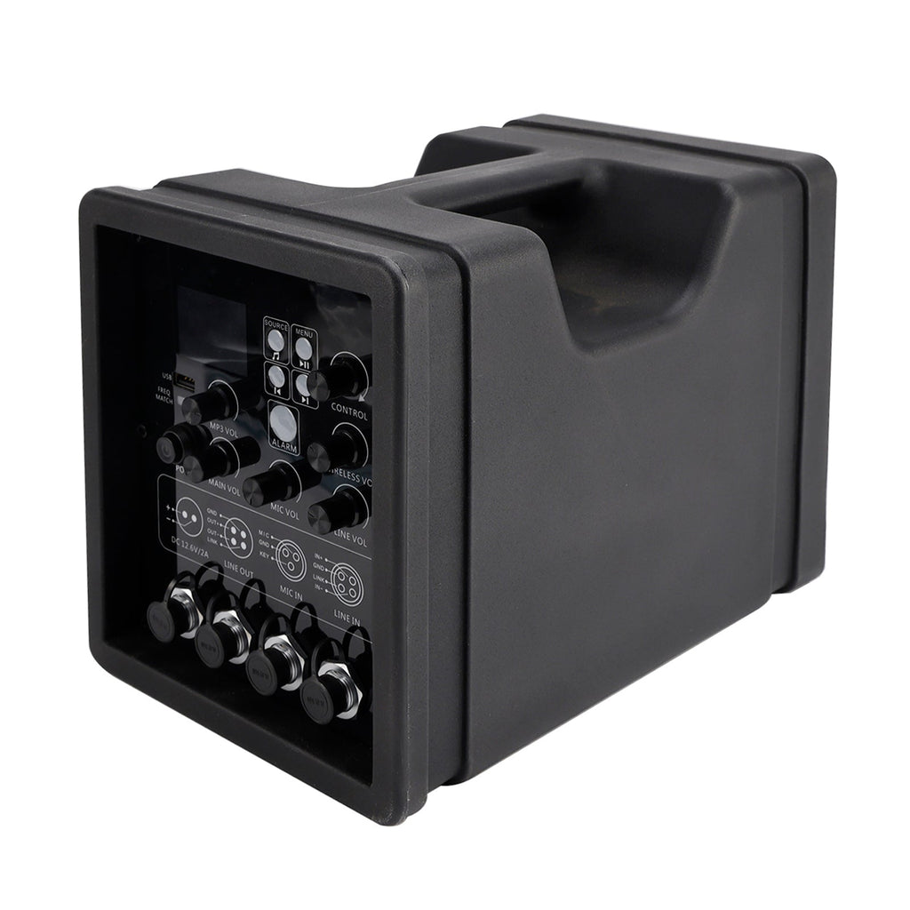 13. Es verfügt über einen FM-Empfänger, ein drahtloses Mikrofon, einen MP3-Recorder und -Player, einen externen USB-Audioeingang und einen kabelgebundenen Mikrofoneingang.