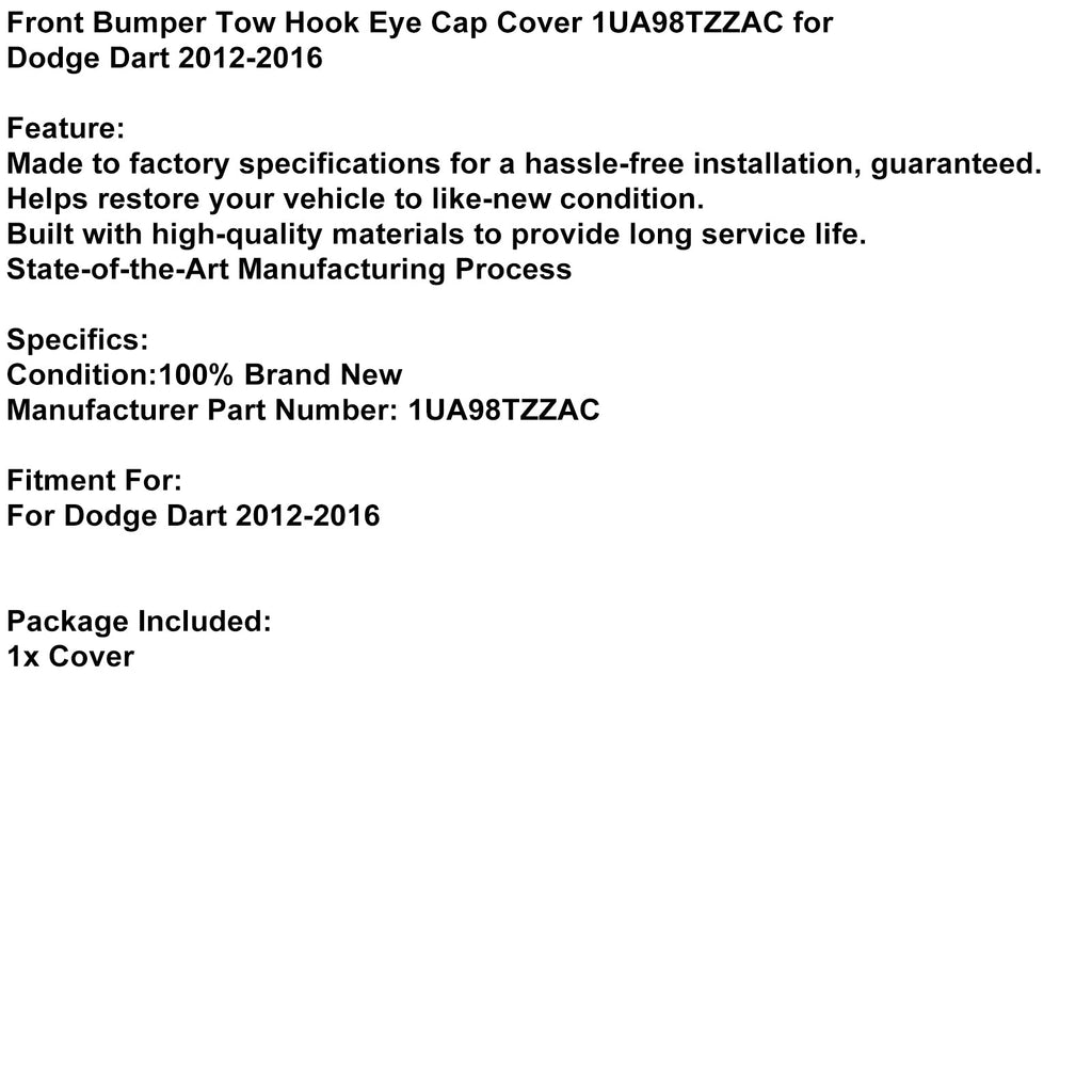2012-2016 Dodge Dart Frontstoßstange Abschlepphaken Augenkappe Abdeckung 1UA98TZZAC