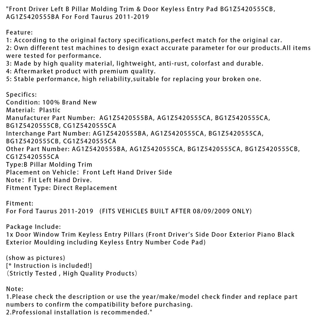 Vorne Fahrer Links B Säule Formteil & Tür Keyless Entry Pad BG1Z5420555CB,AG1Z5420555BA Für Ford Taurus 2011-2019