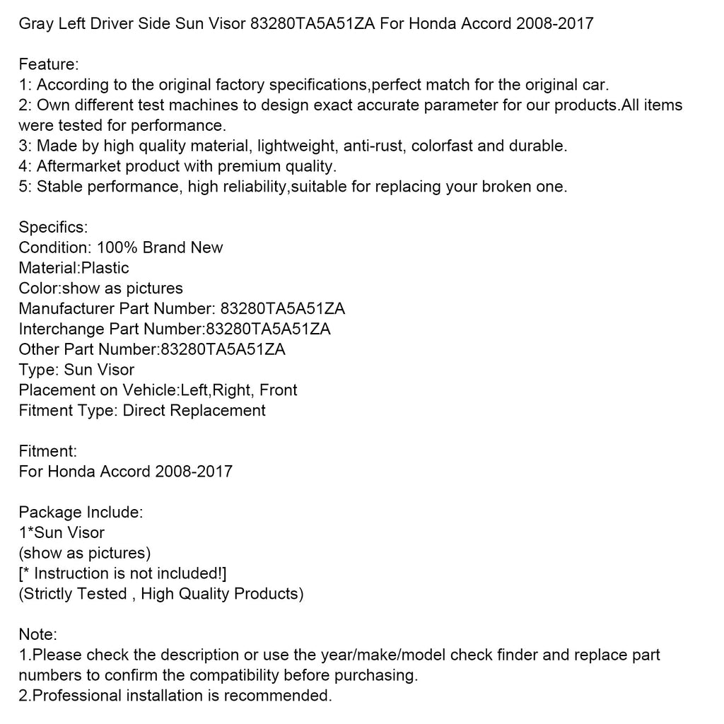 Gray Left Driver Side Sun Visor 83280TA5A51ZA For Honda Accord 2008-2017