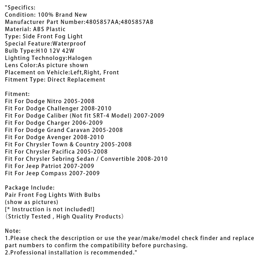 Paar Nebelscheinwerfer für Dodge Chrysler Caliber Jeep Compass 4805857AA