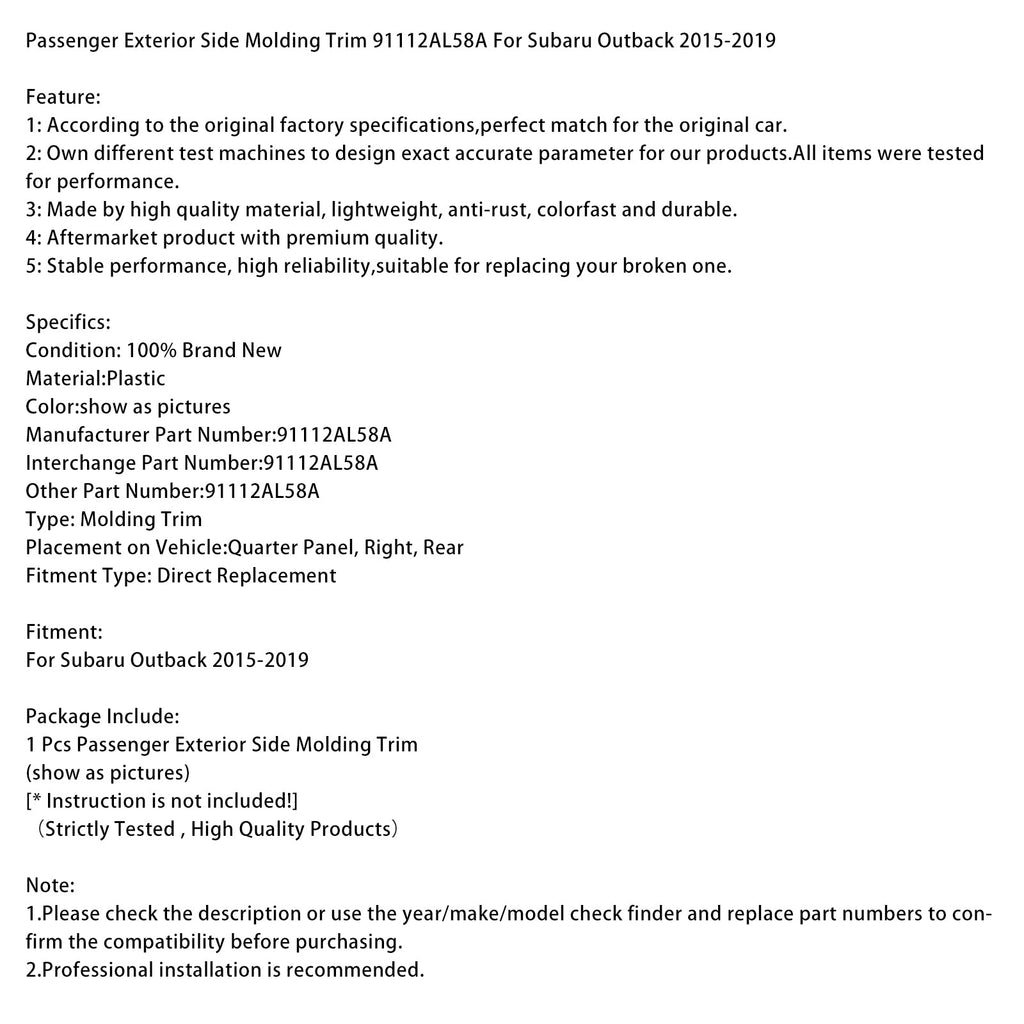 Zierleiste außen rechts (Beifahrerseite) 91112AL58A Passend für Subaru Outback 2015-2019