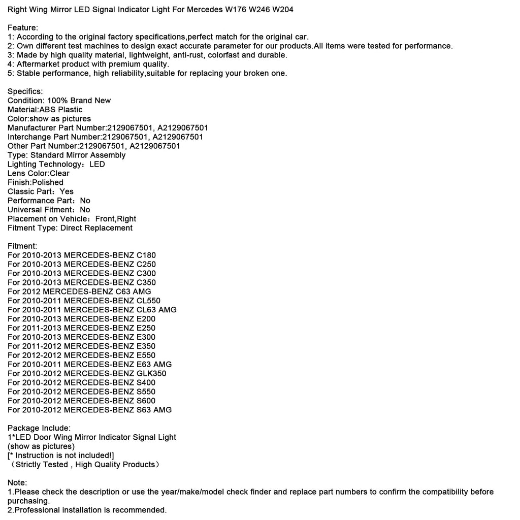 Rechts Außenspiegel LED Signal Kontrollleuchte für Mercedes W176 W246 W204
