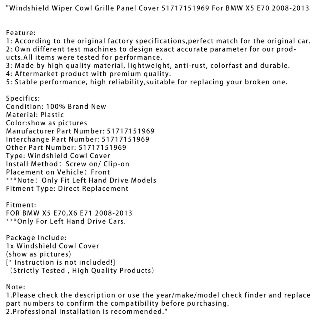 Scheibenwischer Gugel Kühlergrill Abdeckung 51717151969 Für BMW X5 E70 2008-2013