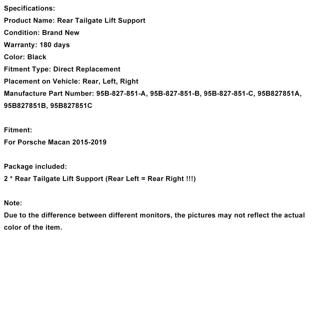 2 Stück elektrische Heckklappen-Hebestützen 95B827851B passend für Porsche Macan 2015-2019