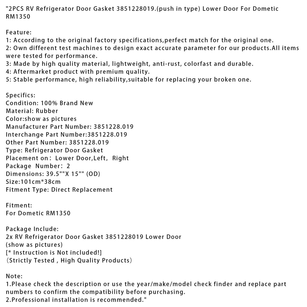 2 Stück Türdichtungen für Wohnmobil-Kühlschränke 3851228019 (Einstecktyp) Untere Tür für Dometic RM1350
