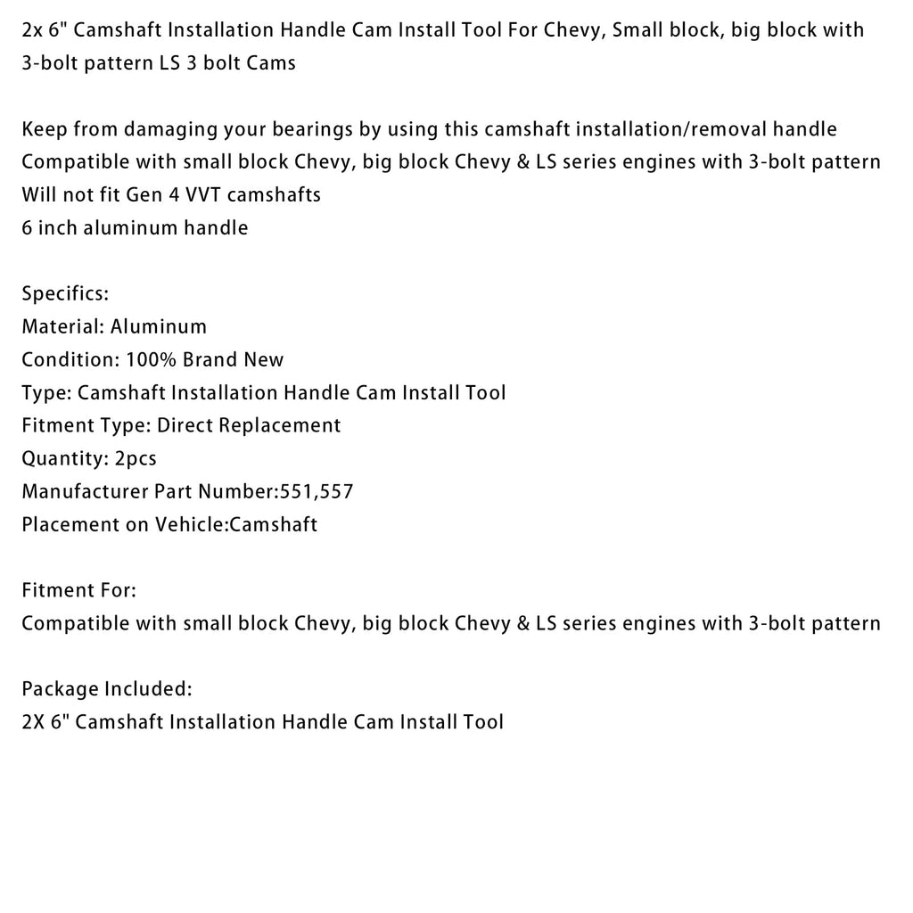 2x 6"" Nockenwellen-Einbaugriff Nockenwellen-Einbauwerkzeug für Chevy, Small Block, Big Block mit 3-Loch-Muster LS 3-Loch-Nockenwellen