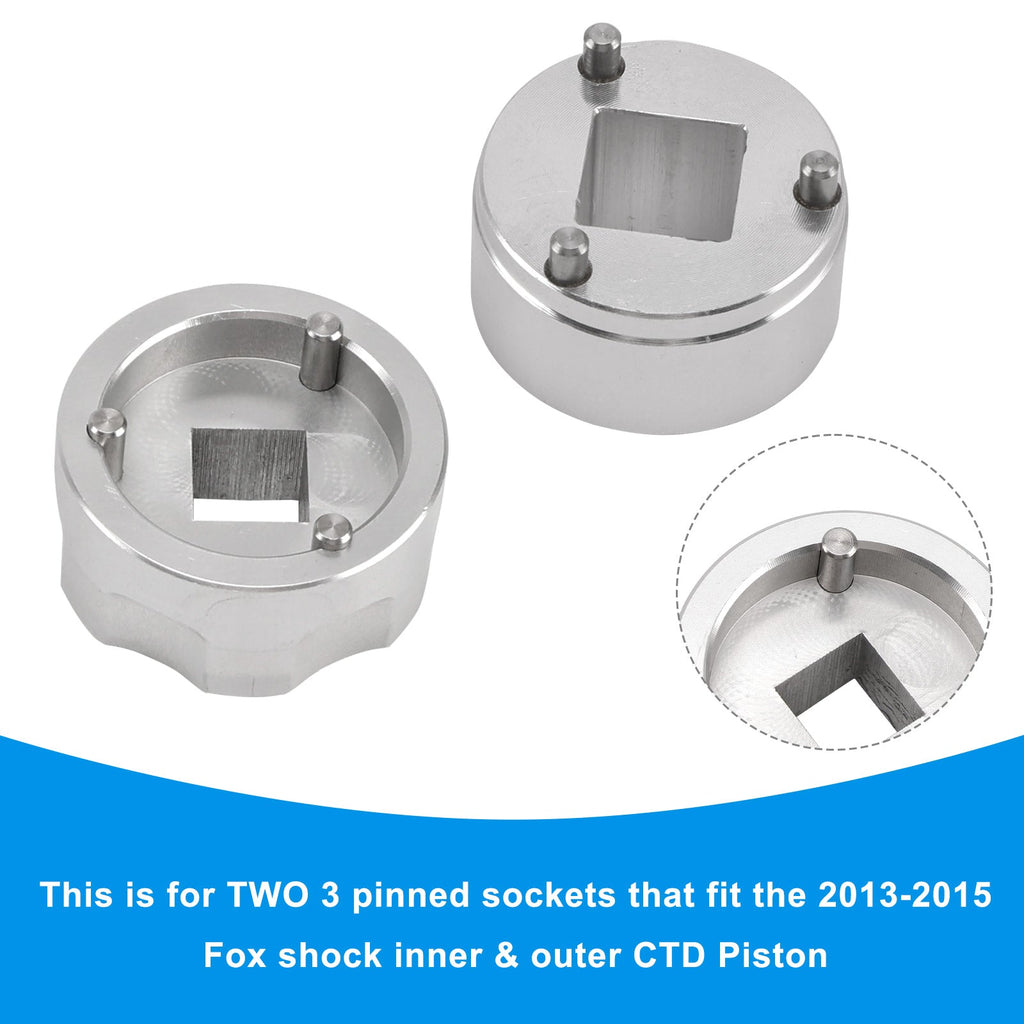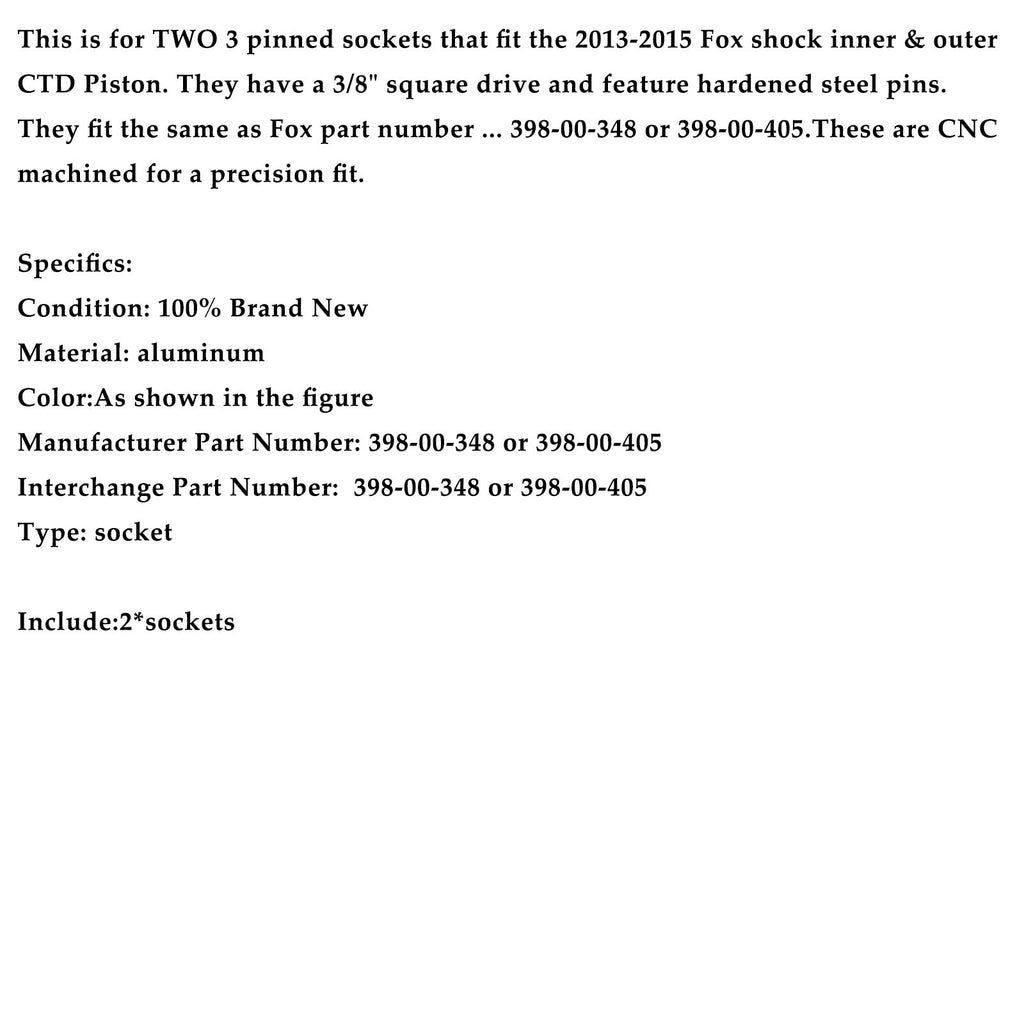 Dies ist für ZWEI 3-Stift-Steckschlüssel, die für den inneren und äußeren CTD-Kolben des Fox-Stoßdämpfers 2013–2015 geeignet sind. Sie haben einen 3/8-Zoll-Vierkantantrieb und sind mit gehärteten Stahlstiften ausgestattet. Sie passen auf die gleiche Fox-Teilenummer wie ... 398-00-348 oder 398-00-405. Sie sind CNC-gefräst für eine präzise Passform.