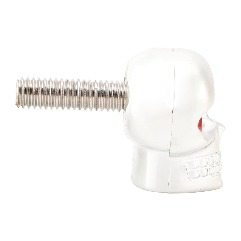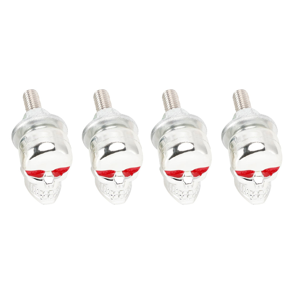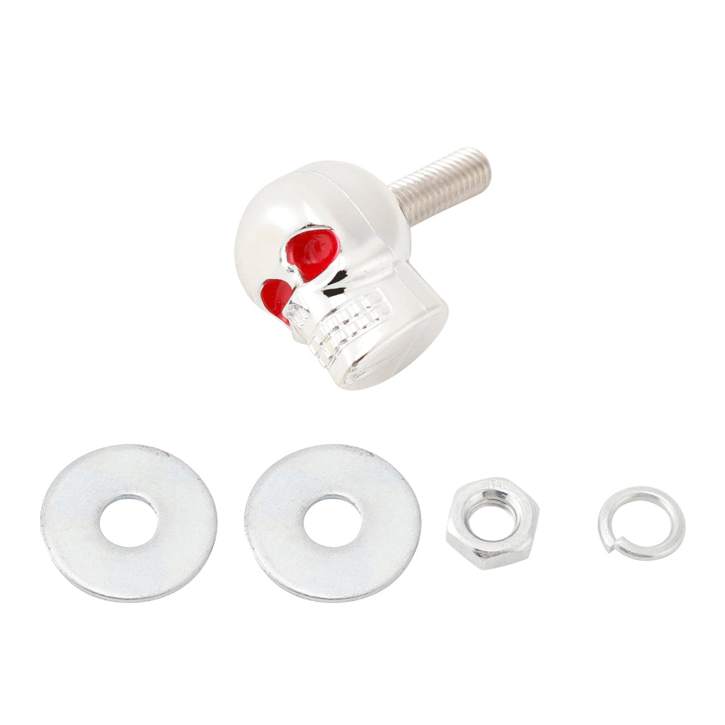 Bolzen mit rotem Totenkopf-Augen-Design zur Befestigung an Nummernschildern.