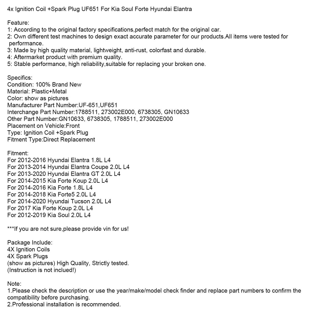 4x bobina de encendido + bujía UF651 apta para Kia Soul Forte Hyundai Elantra