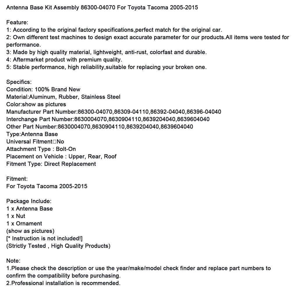 Antennenfuß-Kit 86300-04070 Passend für Toyota Tacoma 2005-2015