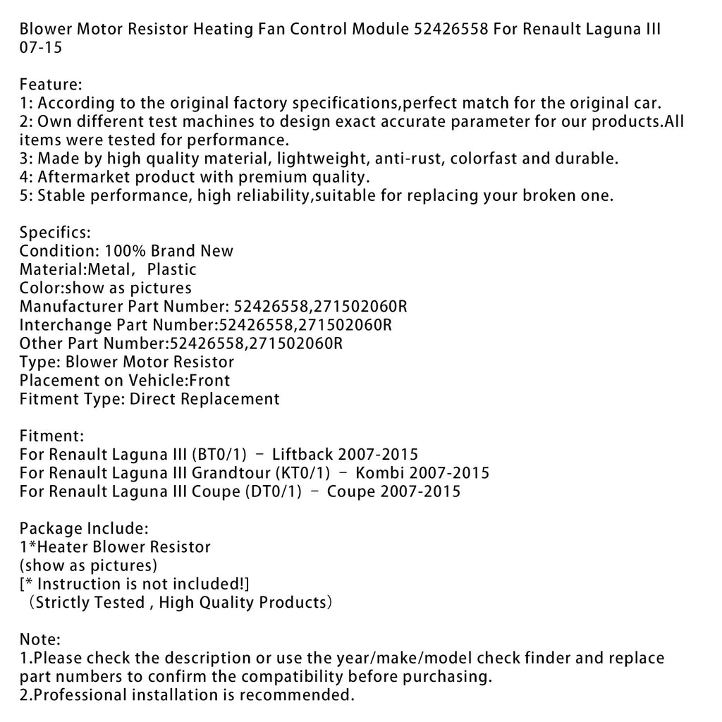 Gebläsemotor Widerstand Heizung Lüftersteuermodul 52426558 Für Renault Laguna III 07-15