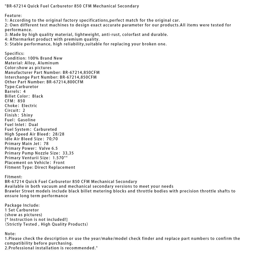 BR-67214 Quick Fuel Vergaser 850 CFM Mechanischer Sekundärvergaser