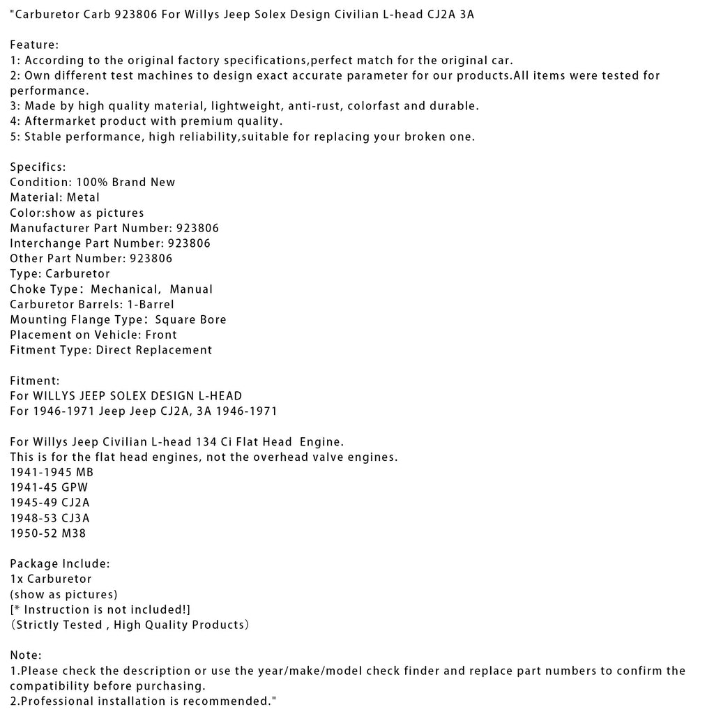 Vergaser Carb 923806 Fit Für Willys Jeep Solex Design Zivilen L-kopf CJ2A 3A