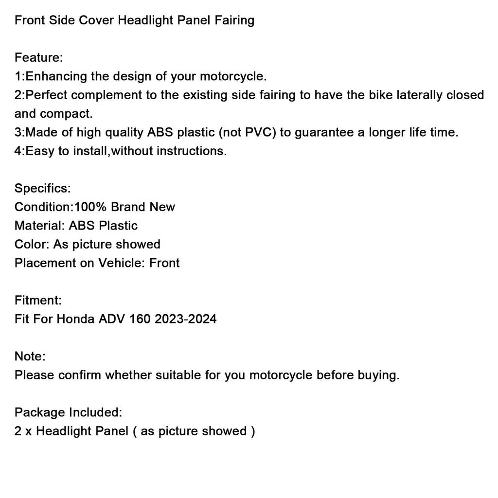 Cubierta delantera, Panel de faro, carenado apto para Honda ADV 160 2023-2024