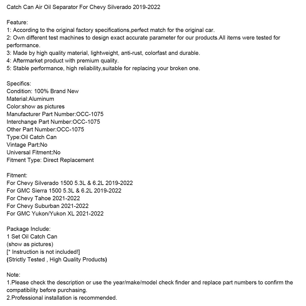 Ölabscheider-Auffangbehälter für Chevy Silverado 2019-2022