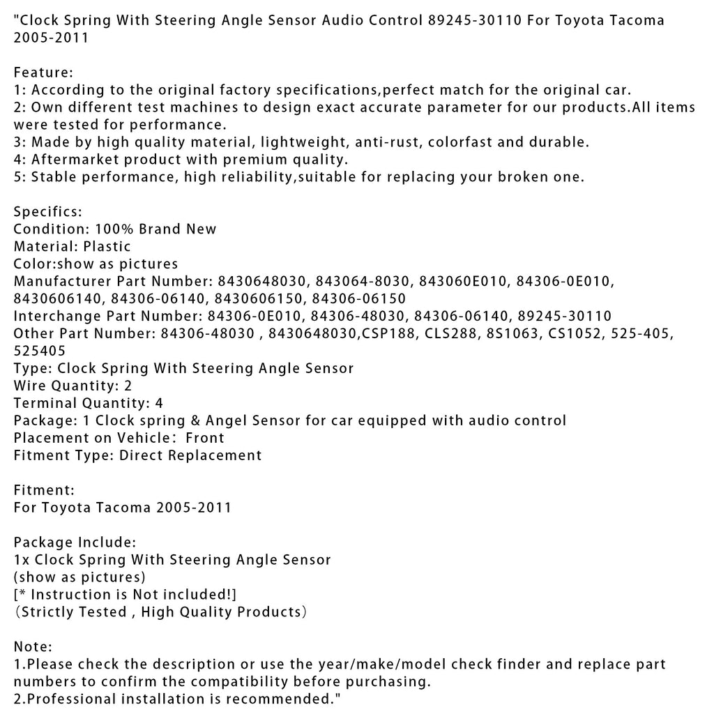 Wickelfeder mit Lenkwinkelsensor und Audiosteuerung 89245-30110 Passend für Toyota Tacoma 2005-2011