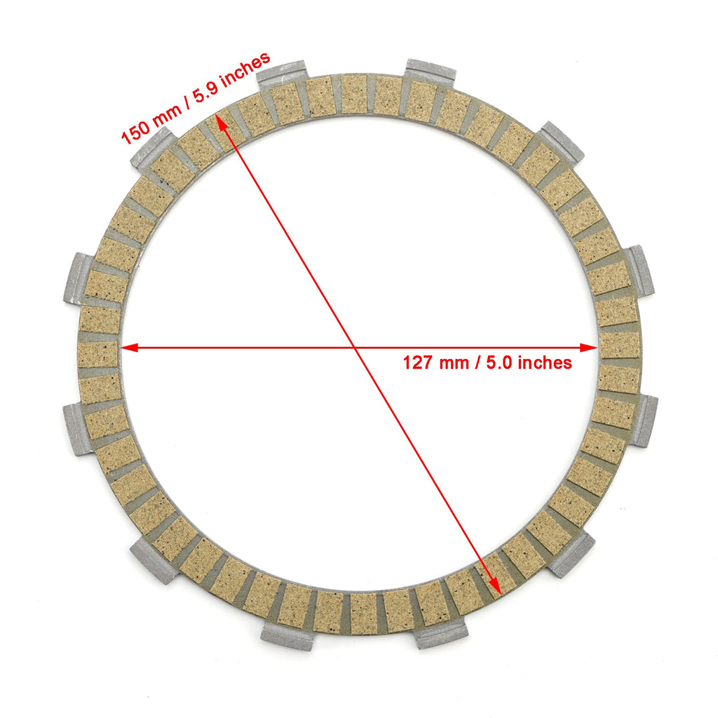 El kit incluye 5 placas de fricción sobre núcleos de hierro endurecido y 2 placas de accionamiento de hierro endurecido.