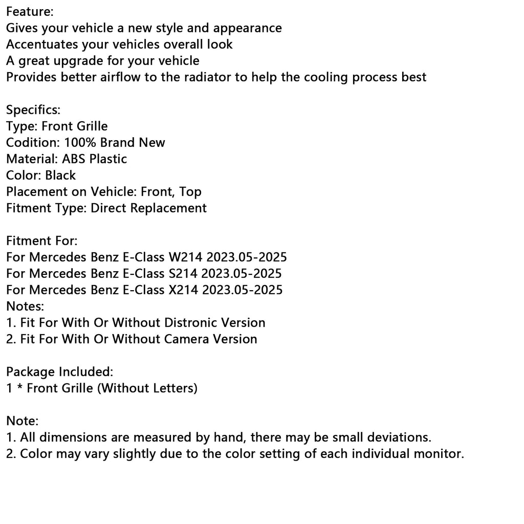 Front Bumper Grill Grille Fit Mercedes-Benz E-Class W214 S214 X214 2024+