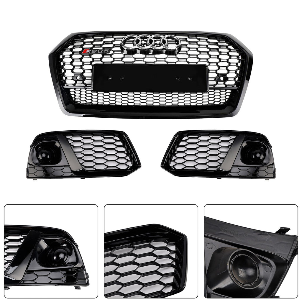 Front Honeycomb Mesh Grill + Nebel Lampe Grille Fit für Audi Q5 SQ5 2018 2019