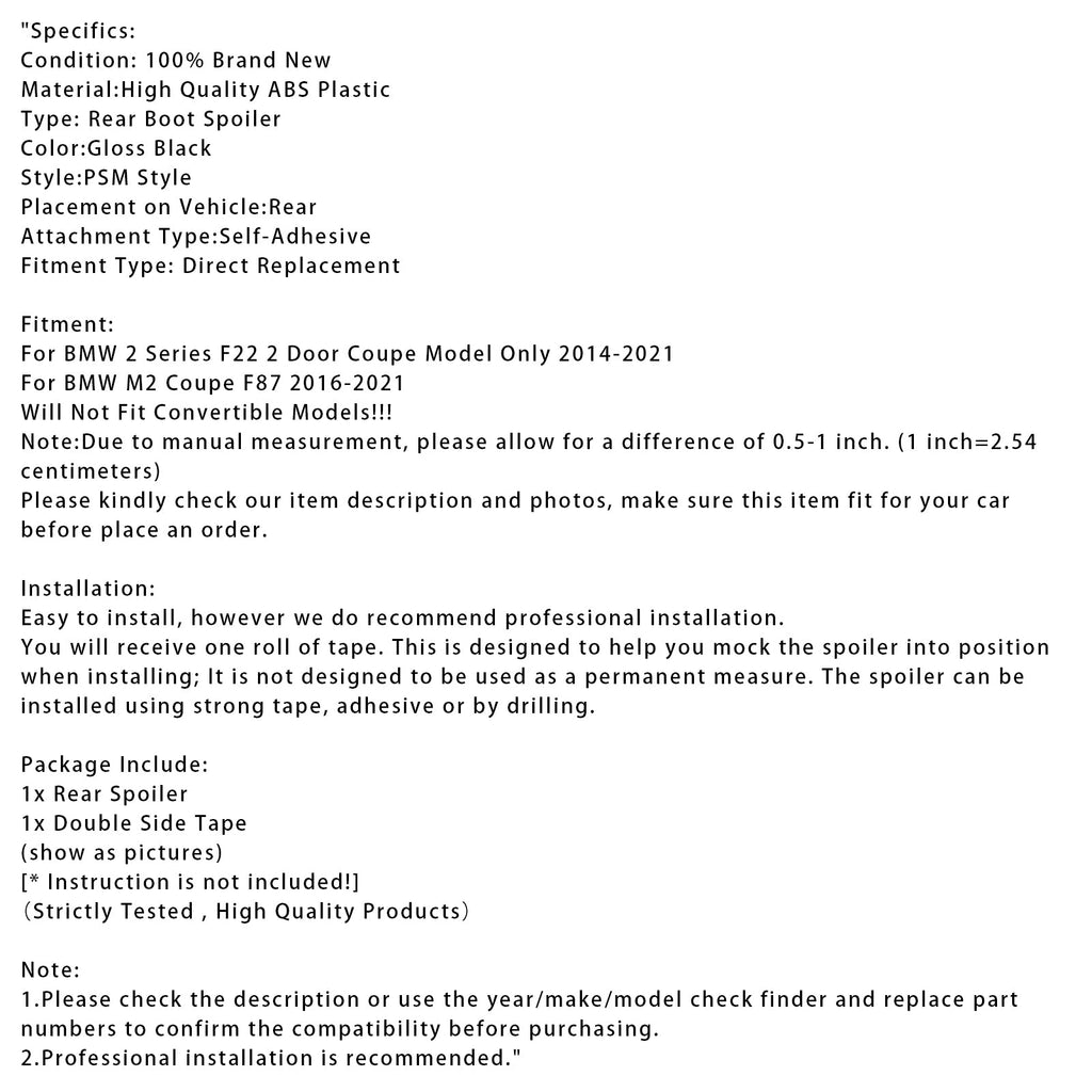 Gloss Black Heckspoiler für BMW 2er F22 F87 14-21 Coupé PSM Style