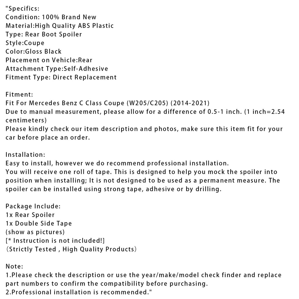 Gloss Black Rear Spoiler For Mercedes-Benz C-Class W205 C205 Coupe 2014-2021